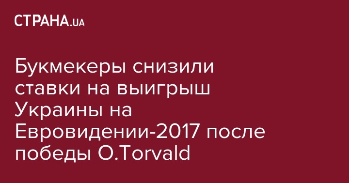 После оглашения победителя национального отбора на "Евровидение-2017", которым стала полтавская группа O.Torvald, ставки букмекеров на победу Украины резко упали. Об этом сообщают "Украинские новости".