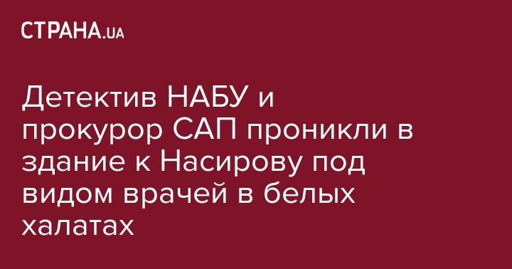 Детектив НАБУ и прокурор САП проникли в здание к Насирову под видом врачей в белых халатах