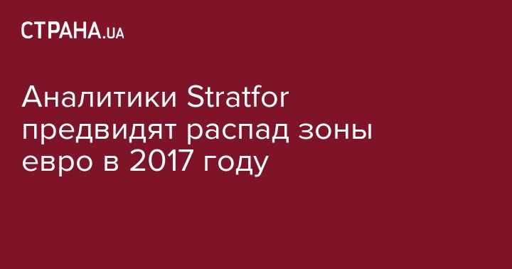 Аналитики Stratfor предвидят распад зоны евро в 2017 году