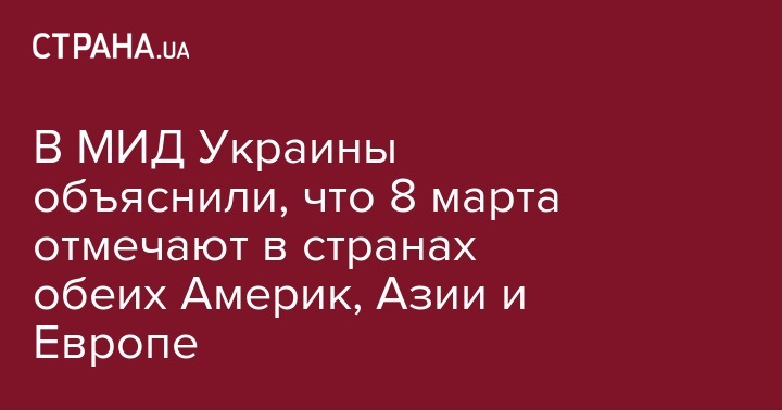 В МИД Украины объяснили, что 8 марта отмечают в странах обеих Америк, Азии и Европе