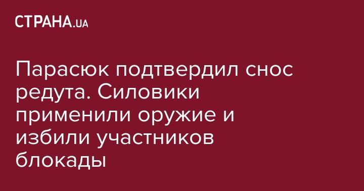 Парасюк подтвердил снос редута. Силовики применили оружие и избили участников блокады