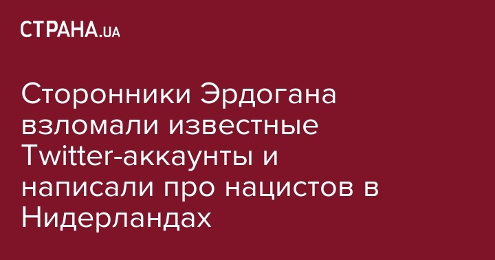 Десятки аккаунтов известных чиновников и даже мировых новостных изданий в социальной сети Twitter были взломаны, и на них разместили посты на турецком языке о "нацистской Германии" и "нацистских Нидерландах". Об этом сообщает AFP.