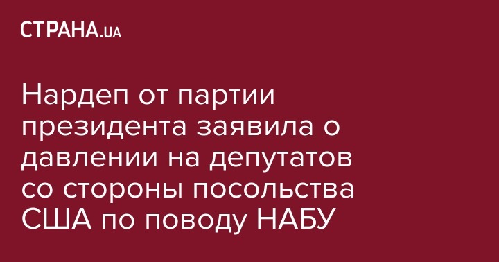 Нардеп от партии президента заявила о давлении на депутатов со стороны посольства США по поводу НАБУ