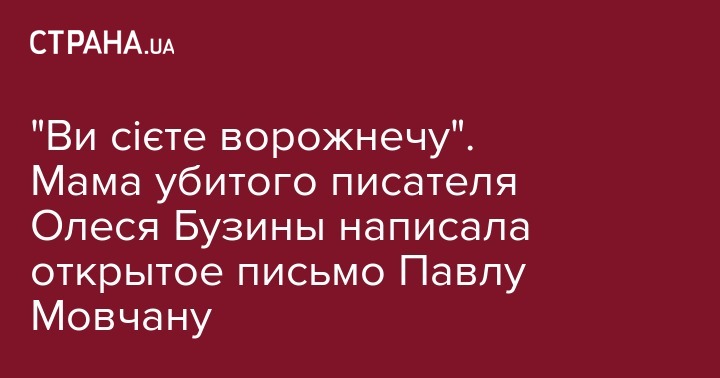 "Ви сієте ворожнечу". Мама убитого писателя Олеся Бузины написала открытое письмо Павлу Мовчану