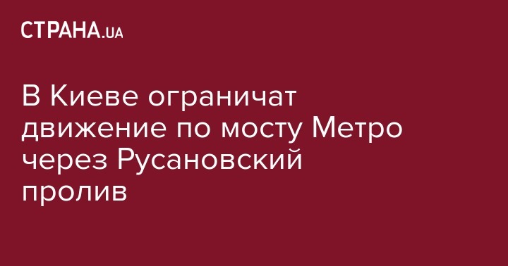 С 20 по 22 марта на мосту Метро через Русановский пролив в Киеве ограничат движение. Об этом сообщает сайт КГГА.