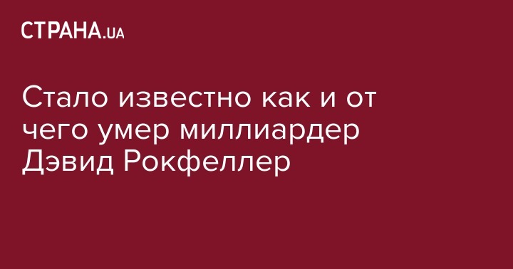 20 марта смерть 101-летнего Дэвида Рокфеллера старшего подтвердил спикер семейства "банкиров банкиров" Фразер Сейтель, который сообщил, что самый старый миллиардер планеты "скончался во сне в доме городка Покантико Хилл (штат Нью-Йорк) в результате хронической сердечной недостаточности".