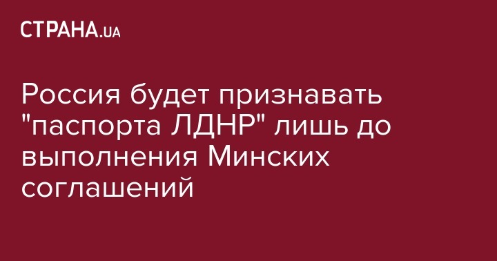 Россия будет признавать "паспорта ЛДНР" лишь до выполнения Минских соглашений