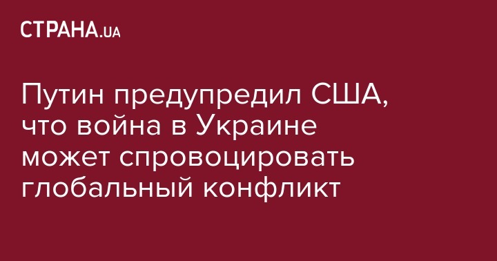 Путин предупредил США, что война в Украине может спровоцировать глобальный конфликт