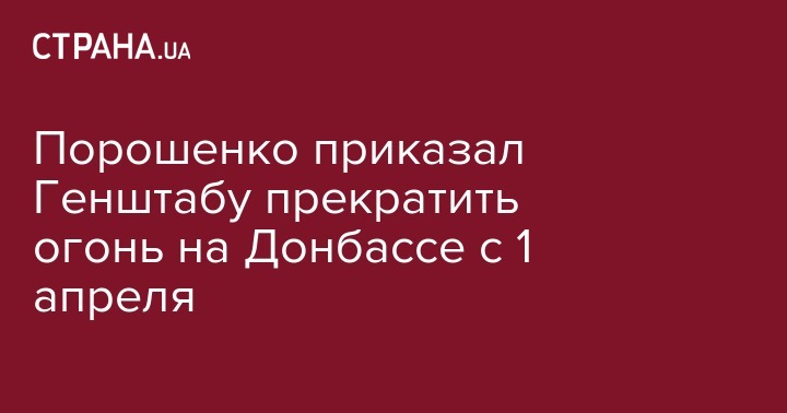 В четверг, 30 марта президент Украины Петр Порошенко сообщил, что отдал приказ Генштабу и Минобороны Украины прекратить огонь на Донбассе с 1 апреля 2017. Об этом сообщает Интерфакс.