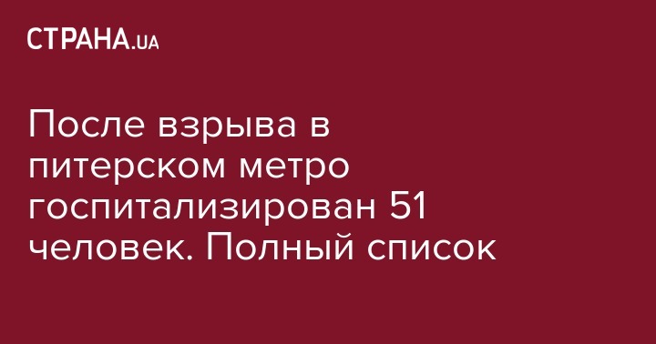 После взрыва в питерском метро госпитализирован 51 человек. Полный список