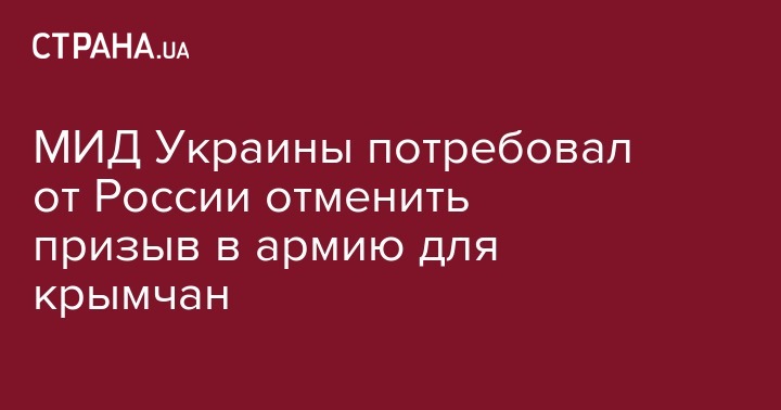 "Резолюция ГА ООН A/RES/71/205 от 19 декабря 2016 "Ситуация с правами человека в Автономной Республике Крым и городе Севастополь (Украина)" установила факт незаконной оккупации Российской Федерацией Автономной Республики Крым и города Севастополя и призвала ее обеспечить выполнение своих обязательств по международным гуманитарным правом, международными механизмами защиты прав человека, другими договорно-правовыми инструментами, стороной которых она выступает. В этом контексте было высказано требование отменить призыв на военную службу граждан, проживающих на временно оккупированной территории Автономной Республики Крым и г. Севастополь, а также обеспечить неукоснительное соблюдение российской стороной своих международных обязательств", - говорится в заявлении МИДа.