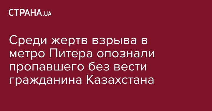 "С прискорбием сообщаем, что по уточненным данным Администрации города Санкт-Петербурга и Следственного комитета Российской Федерации ранее числившийся пропавшим без вести гражданин Казахстана Максим Арышев скончался в результате террористического акта в Санкт-Петербурге 3 апреля 2017 года. В настоящее время тело Максима Арышева находится в Екатерининской больнице города Санкт-Петербурга, родители его уже опознали", - говорится в сообщении.