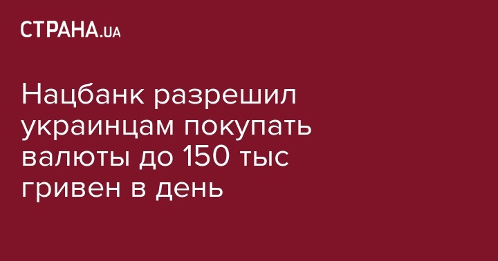 "Внести в постановление Правления Национального банка Украины от 13 декабря 2016 № 410 "Об урегулировании ситуации на денежно-кредитном и валютном рынках Украины "(с изменениями) следующие изменения: в абзаце первом подпункта 3 пункта 6 цифры "12 000" заменить цифрами "150 000", - говорится в постановлении.