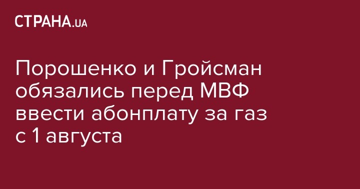Согласно новому Меморандуму о сотрудничестве Украины с МВФ, Киев обязался все же ввести с 1 августа 2017 года абонплату за за пользование газовой инфраструктурой, которую попытались ввести еще с 1 апреля. Об этом со ссылкой на Меморандум сообщают "Украинские новости".