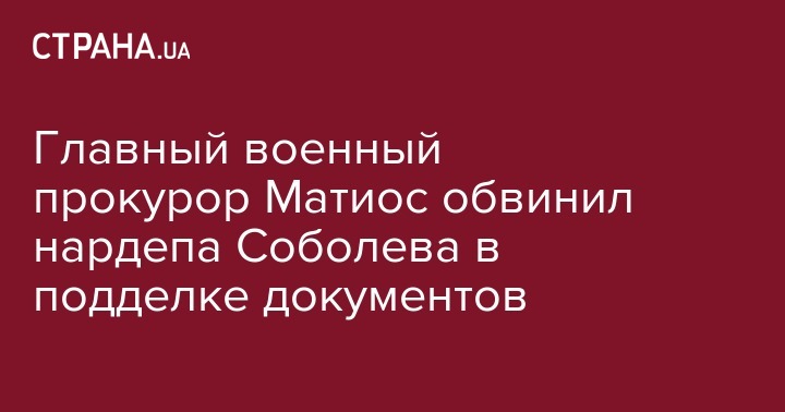 Заместитель генерального прокурора - главный военный прокурор Анатолий Матиос обвинил депутата Верховной Рады Егора Соболева в подделке документов. Об этом сообщает телеканал ZIK.