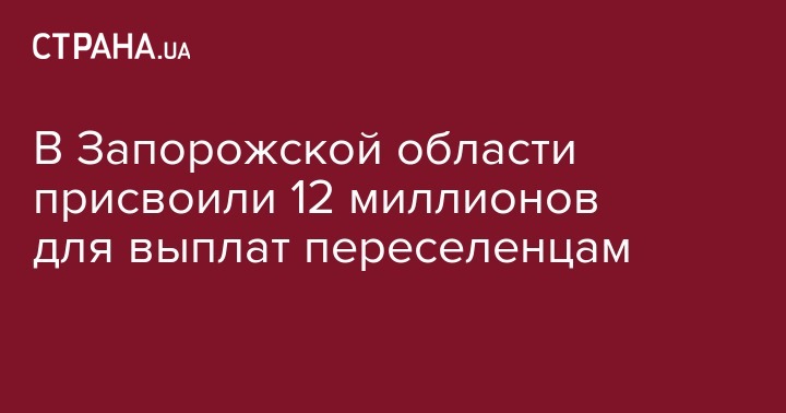 В Запорожской области присвоили 12 миллионов для выплат переселенцам