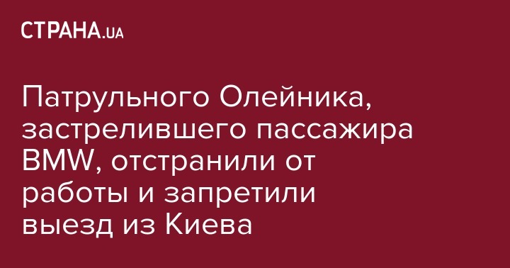 Патрульного Олейника, застрелившего пассажира BMW, отстранили от работы и запретили выезд из Киева