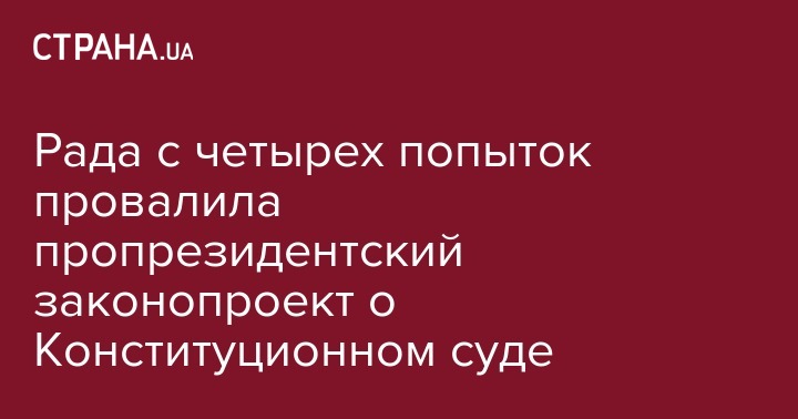 Депутаты Верховной Рады 4 раза провалили голосование по законопроекту о Конституционном суде, который предусматривал значительное расширение влияния президента на этот орган. Об этом сообщает корреспондент "Страны".