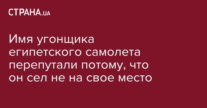 Неразбериха с именем человека, угнавшего египетский самолет на Кипр, возникла из-за того, что он сел на чужое место, сообщила в среду агентству АП стюардесса рейса Руида Ихаб.