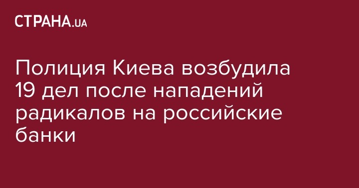Полиция Киева возбудила 19 уголовных дел по факту повреждения в марте-апреле помещений или имущества банковских учреждений, в том числе украинских "дочек" банков РФ, передает "Интерфакс-Украина".