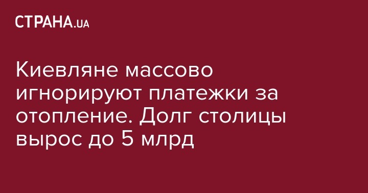 Киевляне продолжают накапливать долги за отопление. Как сообщили в Киевэнерго, долг столицы за тепло составляет почти 5 млрд грн. Наибольшая задолженность за отопление и горячую воду у населения и жилищно-эксплуатационных организаций столицы – 2,2 млрд грн и 904,1 млн грн соответственно, сообщает UBR.