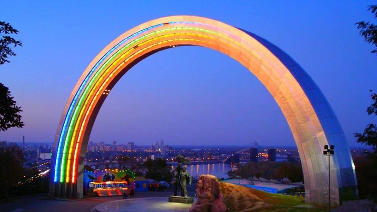 В социальных сетях продолжаются бурные обсуждения преобразования Арки Дружбы народов в Киеве. Ее обклеивают специальной бумагой в цвета радуги. Возмущенные пользователи сразу увидели в радуге пропаганду гомосексуализма.