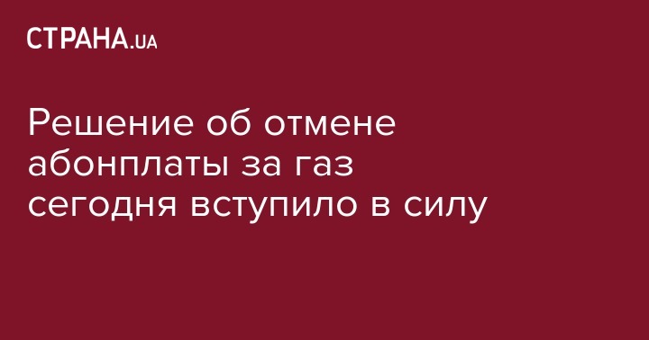 Сегодня, 28 апреля, вступило в силу постановление об отмене абонентской платы за газ для украинских потребителей. Документ был опубликован в правительственной газете "Урядовый курьер" сообщает "112 Украина".