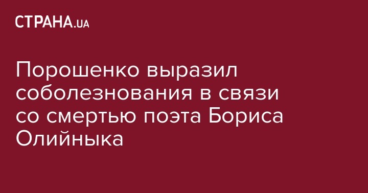 Президент Петр Порошенко выразил соболезнования родным, близким и коллегам умершего сегодня поэта Бориса Олийныка. Об этом сообщает пресс-служба Администрации президента.