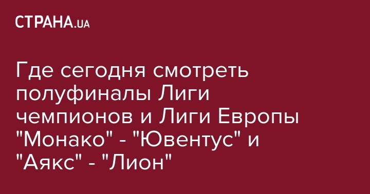 Где сегодня смотреть полуфиналы Лиги чемпионов и Лиги Европы "Монако" - "Ювентус" и "Аякс" - "Лион"