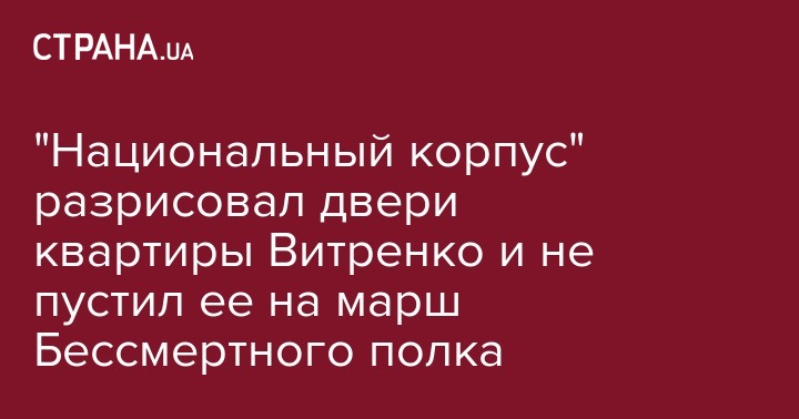 "Национальный корпус" разрисовал двери квартиры Витренко и не пустил ее на марш Бессмертного полка