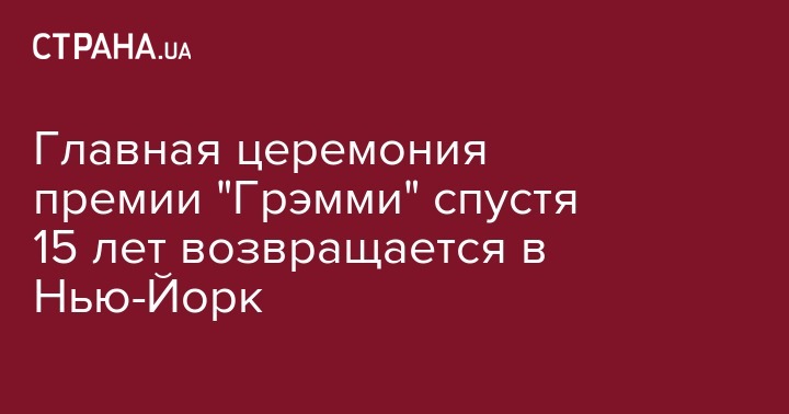 Главная церемония премии "Грэмми" спустя 15 лет возвращается в Нью-Йорк
