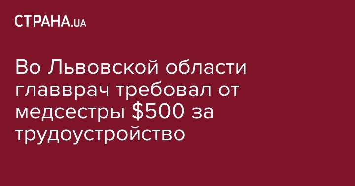 Во Львовской области главврач требовал от медсестры $500 за трудоустройство