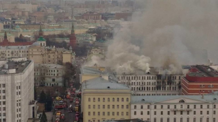 Крыша административного здания Минобороны РФ в центре Москвы обрушилась в результате пожара на площади 1,2 тысячи квадратных метров, сообщают РИА Новости.