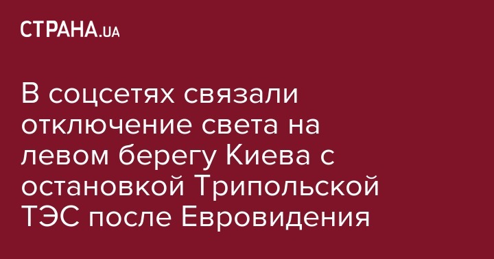 В комментарии к посту журналиста Игоря Кулика пользователи предполагают, что электричество отключили из-за остановки Трипольской ТЭС, которую отключили сразу после финала Евровидения.