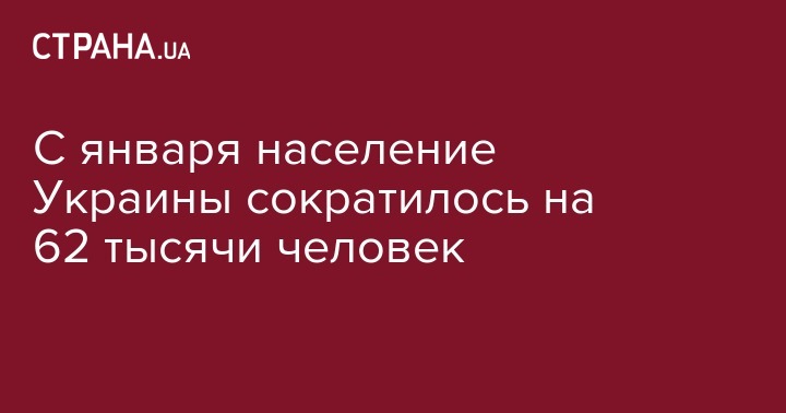 В течение января–марта 2017 года численность населения Украины сократилась на 61,8 тыс. человек и на начало апреля составила 42 млн 522,8 тысяч. Об этом сообщает пресс-служба Госстатистики.