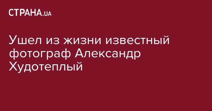 Сегодня, 19 мая, после длительной борьбы со смертельной болезнью ушел из жизни известный украинский фотокорреспондент Александр Худотеплый.