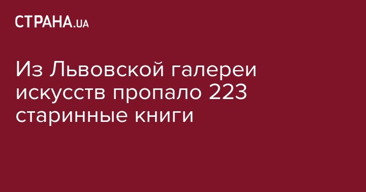 Генеральный директор Львовской национальной галереи искусств Тарас Возняк заявляет, что 223 старинные книги пропали из подразделения галереи Музея искусства древней украинской книги. Об этом он сообщил в интервью газете "День".