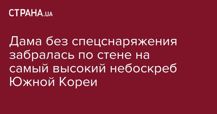 Южнокорейская альпинистка Ким Джейн забралась на крышу самого высокого небоскреба в стране без специального снаряжения, так называемого зацепа для ног, передает УНН со ссылкой на Ренхап.