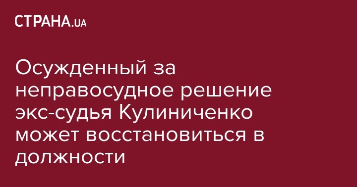 Осужденный за неправосудное решение экс-судья Кулиниченко может восстановиться в должности