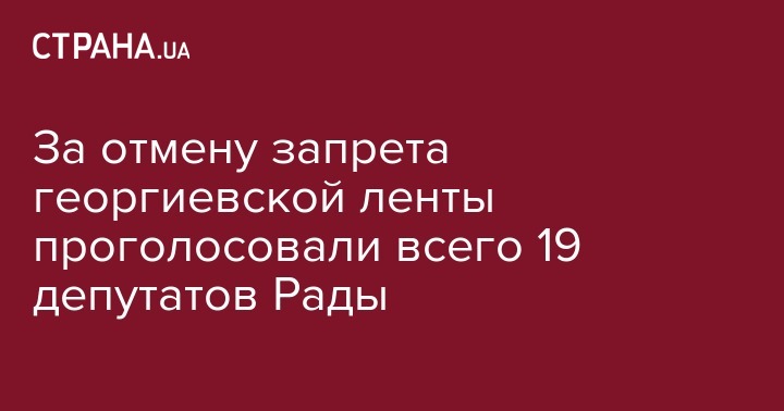 За отмену запрета георгиевской ленты проголосовали только 19 народных депутатов Украины (все - Оппозиционный блок плюс внефракционный депутат Яков Безбах) при необходимом кворуме в 226 голосов, передает УНН.