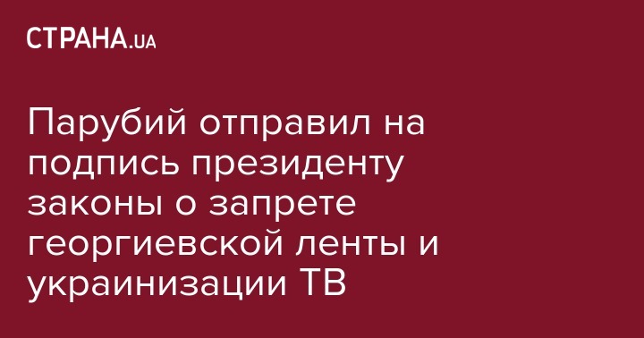 Парубий отправил на подпись президенту законы о запрете георгиевской ленты и украинизации ТВ