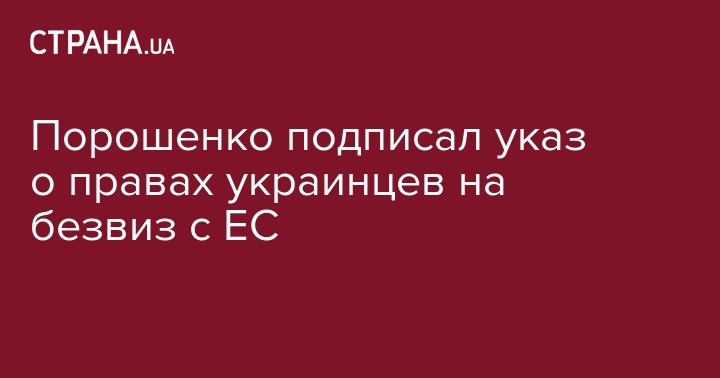Порошенко подписал указ о правах украинцев на безвиз с ЕС