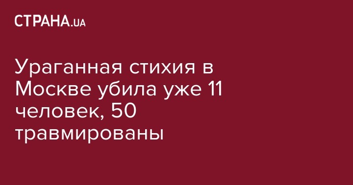 В понедельник, днем 29 мая от обрушившегося на Москву ураганного ветра погибли 11 людей. К врачам уже обратились более 50 человек. Об этом сообщает Интерфакс со ссылкой на департамент здравоохранения Москвы.