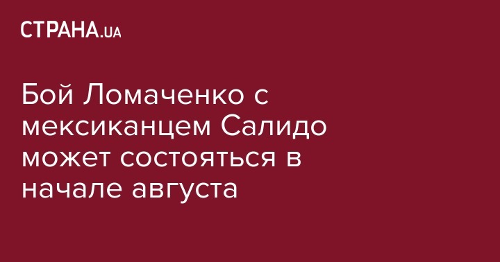 Поединок между чемпионом мира по версии WBO во втором полулегком весе Василием Ломаченко (8-1-1, 6 КО) и мексиканским боксером Салидо (44-13-4, 31 КО) может состояться в начале августа 2017 года. Об этом сообщает XSPORT.