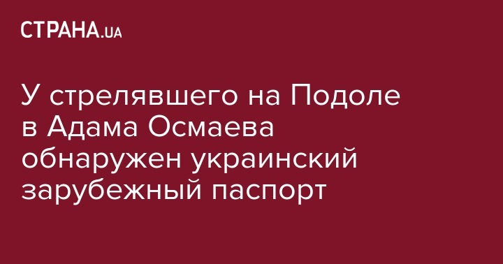 У мужчины, стрелявшего в Адама Осмаева на Подоле в Киеве, обнаружен заграничный паспорт гражданина Украины, проверяется достоверность документа и устанавливается личность нападавшего, сообщил директор департамента коммуникации Министерства внутренних дел Украины Артем Шевченко.