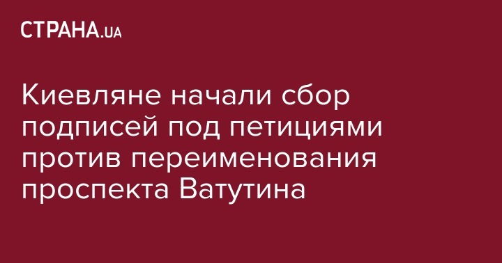 "1 июня 2017 года Киевсовет переименовал проспект Ватутина в проспект Шухевича. Требуем оставить проспекту прежнее название! Благодаря генералу Ватутину в 1943 году Киев был освобожден от немецко-фашистских захватчиков", - сказано в петиции, автором которой является Алена Бережная, на сайте Киевсовета. Ее на данный момент подписал 21 человек.