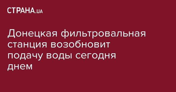 Донецкая фильтровальная станция возобновит подачу воды сегодня днем