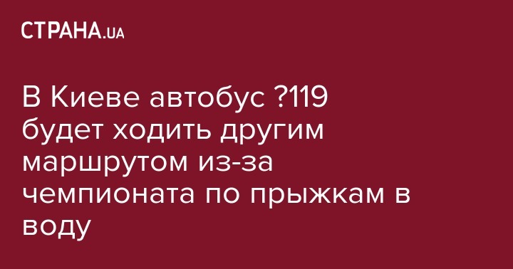 Из-за проведения в Киеве чемпионата Европы по прыжкам в воду с 12-го по 18-ое июня 2017 года будет изменен маршрут движения автобусов №119. Об этом передает пресс-служба коммунального предприятия "Киевпастранс".