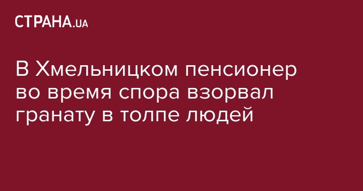 "Правоохранители установили, что между группой мужчин возник конфликт на почве раздела имущества, в разгаре которого 65-летний пенсионер взорвал боевую гранату "РГД-5". Большинству присутствующих удалось спрятаться, а вот 46-летний хмельничанин вовремя не сориентировался и получил в результате взрыва осколочные ранения спины и ноги. После оказания медицинской помощи в Хмельницкой городской больнице мужчину отпустили домой", - говорится в сообщении.