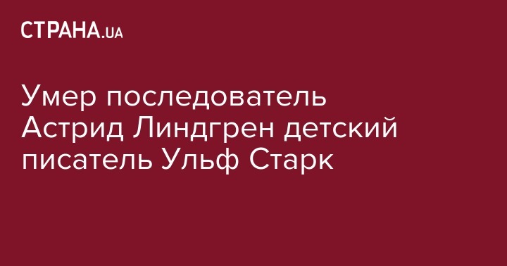 Умер шведский писатель и сценарист Ульф Старк, который считался одним из самых известных и уважаемых в мире детских писателей. Об этом его семья сообщила шведскому изданию Dagens Nyheter.